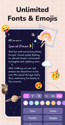 We provide unlimited entry editing options, pictures, emojis, moods, etc. Also, you can decorate your entries with stylish fonts and backgrounds.